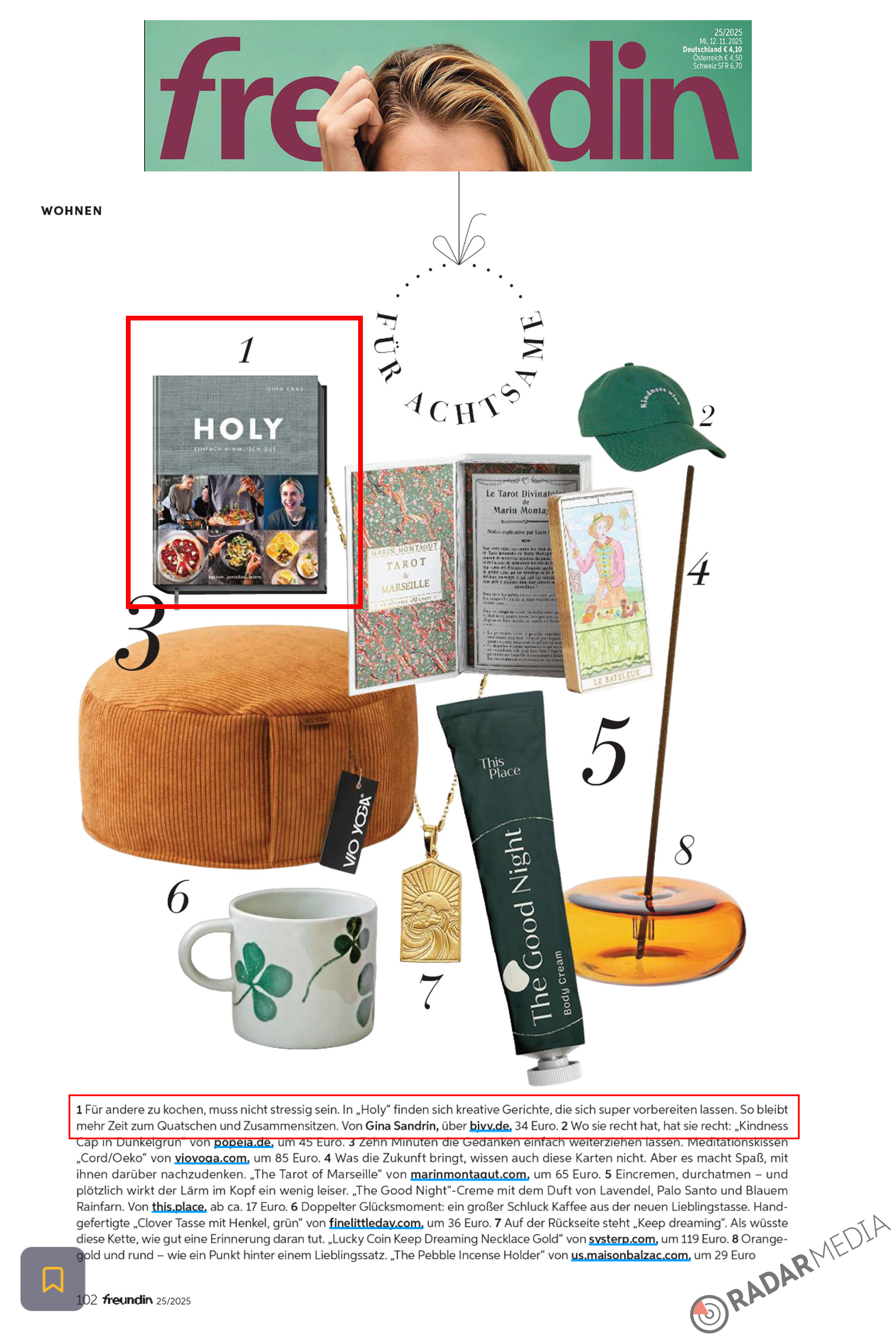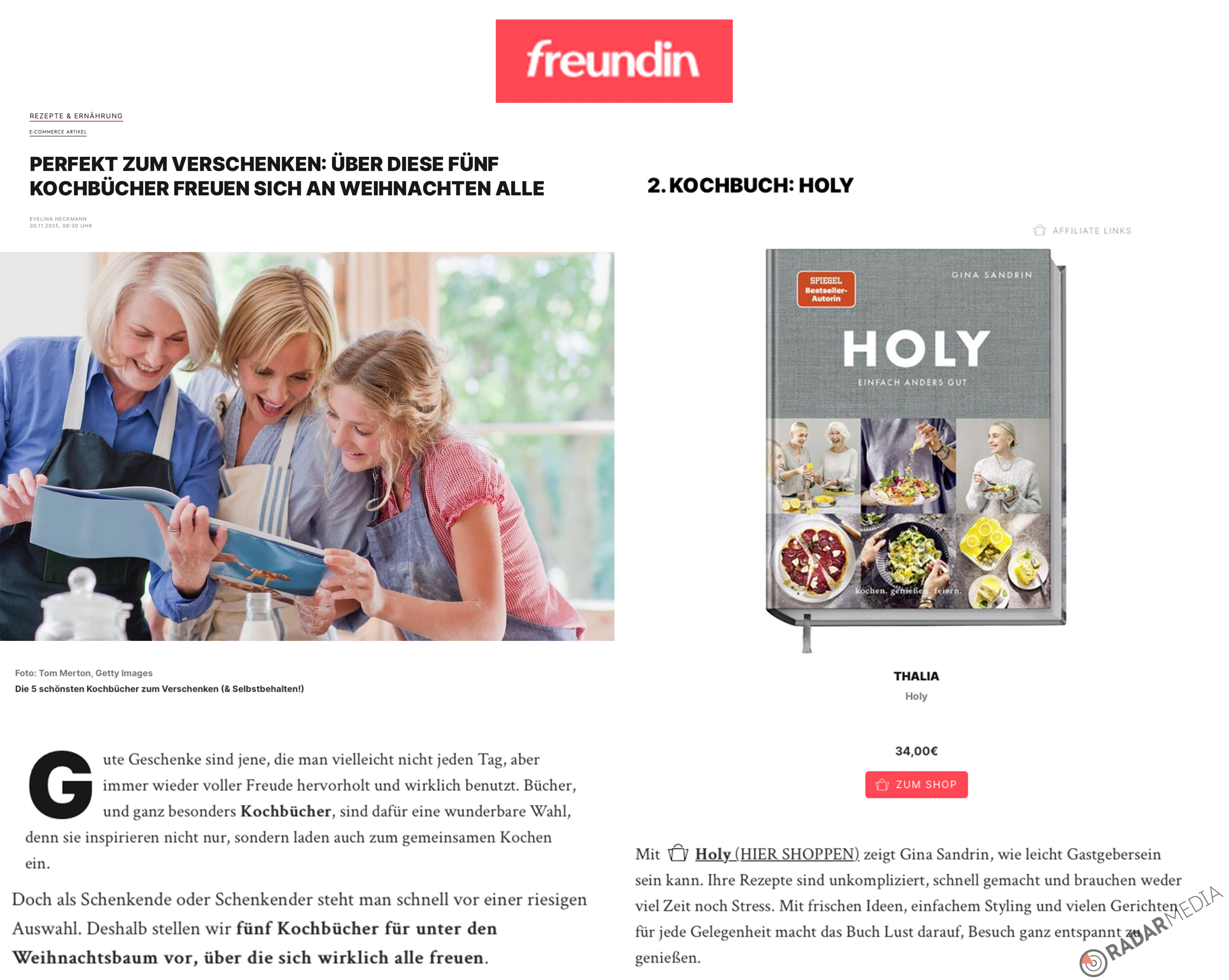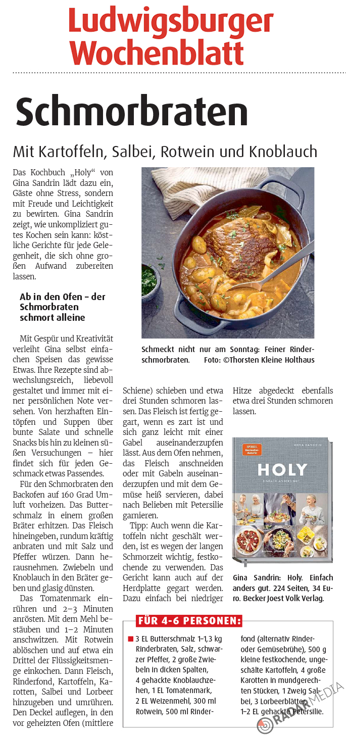 „Das Kochbuch „Holy“ von Gina Sandrin lädt dazu ein, Gäste ohne Stress, sondern mit Freude und Leichtigkeit zu bewirten. Gina Sandrin zeigt, wie unkompliziert gutes Kochen sein kann: köstliche Gerichte für jede Gelegenheit, die sich ohne großen Aufwand zubereiten lassen. “